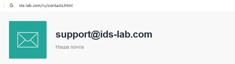 Аферисты ИДС Лаб на своем официальном интернет-ресурсе указывают адрес электронной почты, а именно: