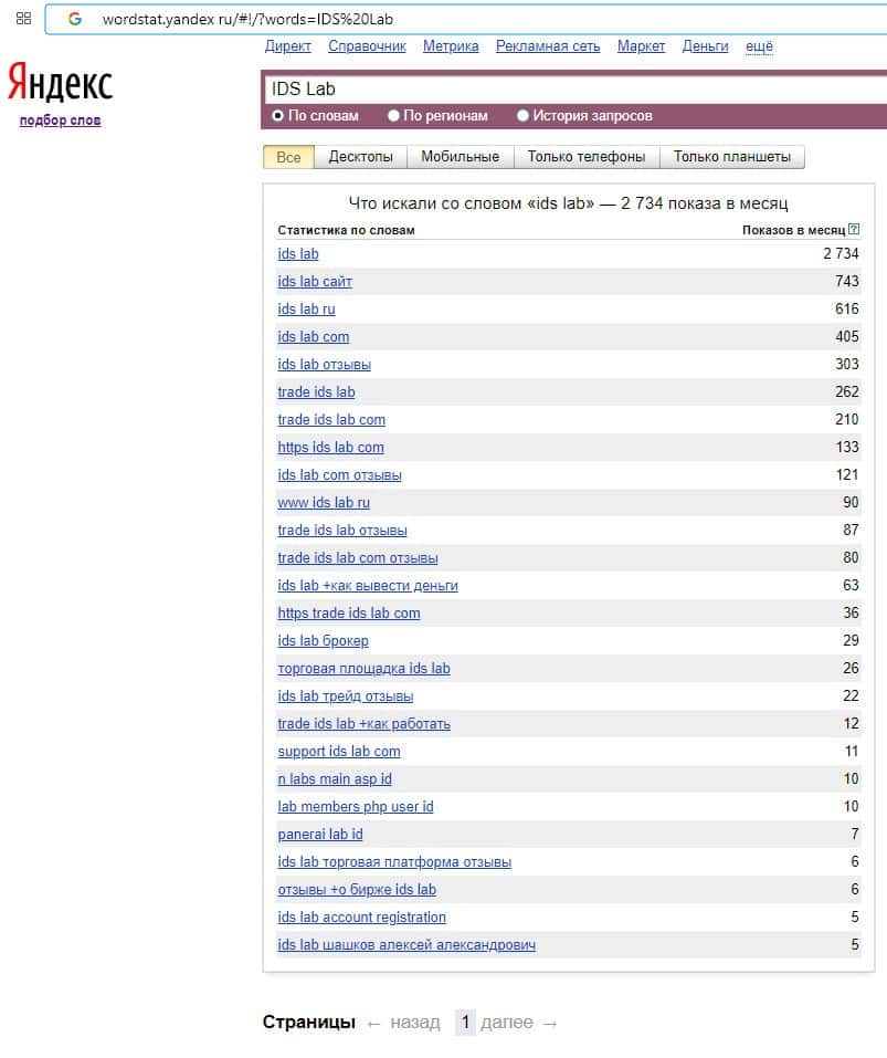 Данный интернет-лохотрон под названием "IDS Lab" скорее всего пользуется популярностью в поисковике Яндекс из-за рекламы в интернете.
