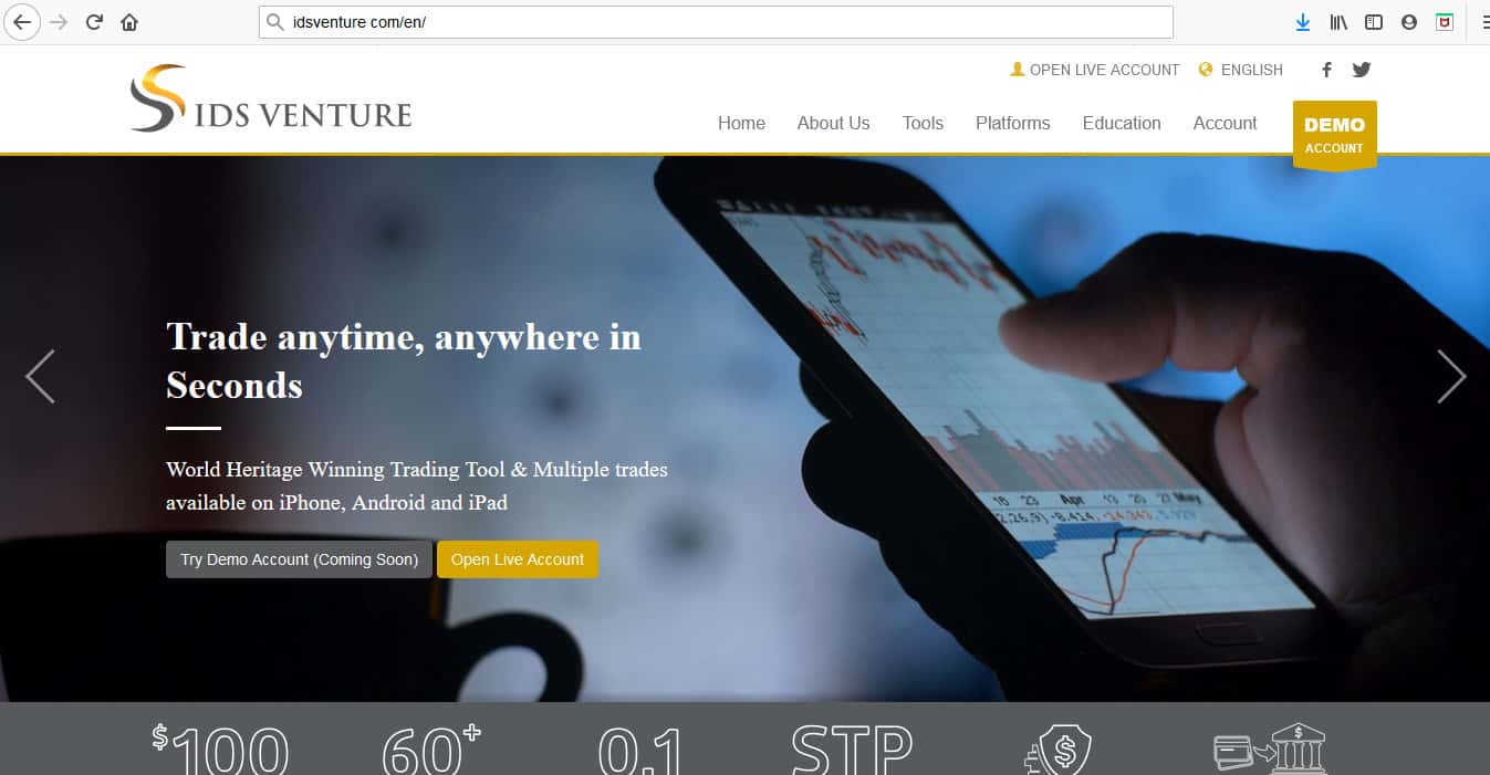 Сайт мошенников ИДС Вентур сделан специально на английском языке, чтобы вызвать как можно больше доверия у наивного люда. Типо они западная компания. Сейчас это очень модно. Но на деле это обычные мошенники, родом из России или другой страны СНГ. Сайт содержит минимум полезной информации для клиента.