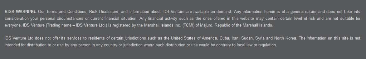 ИДС Вентур пишут у себя на сайте, что они зарегистрированы на Маршаловых островах, но не могут предоставить доказательство даже этой информации, потому что кроме как пару строчек об этом нет вообще ничего! Даже скришота этой самой пресловутой лицензии. Ничего нет. Следовательно, они работают полностью незаконно.