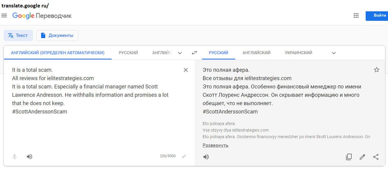 Перевод отзыва о махинациях IES - ielitestrategies com на сайте translate.google ru