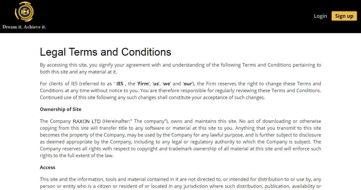 Контора IES - ielitestrategies com предоставила на своем сайте клиентское соглашение. Но как мы все прекрасно понимаем - это чисто для отвода глаз. На самом деле клиентское соглашение ИЕС не имеет никакой юридической силы. Все это потому, что контора работает без лицензии!