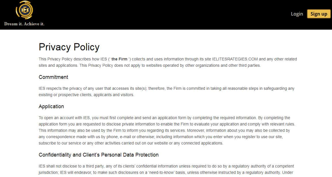 - Что можно сказать о политике конфиденциальности IES - ielitestrategies com?