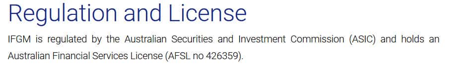 Мошенники IFGM у себя на сайте говорят, что они зарегистрированы в Австралии. Даже дают номер этой самой лицензии. Только вот реального подтверждения этому нет. Они не показывают сам документ, и непонятно, где его можно увидеть. Наверняка при проверке окажется, что данная лицензия принадлежит совсем другой организации.