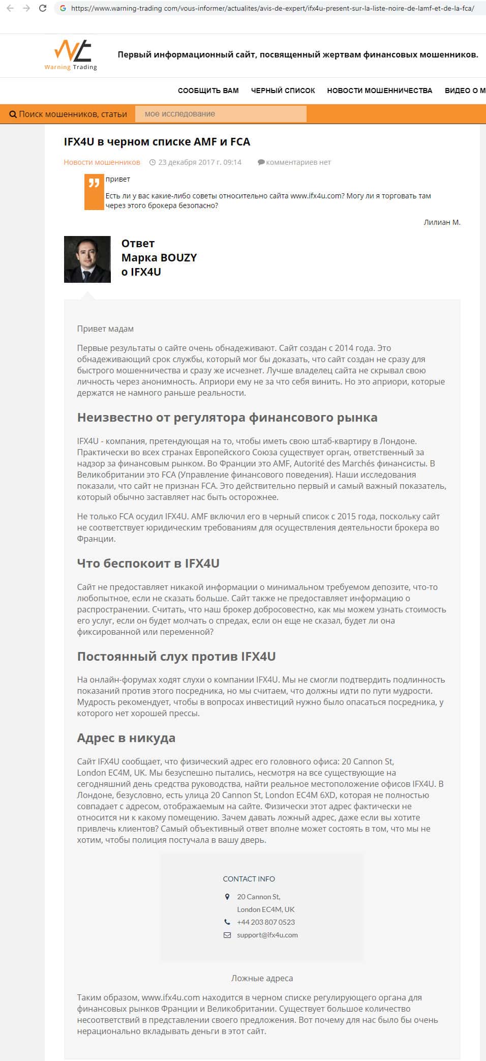 warning-trading com - сайт с информацие о аферистах IFX4U