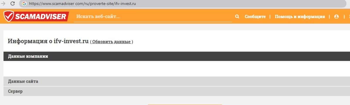 По запросу "IFV Invest" также нет результатов по поискам, что свидетельствует только о том, что помимо своих мошеннических действий аферисты не дают зайти на свой сайт.