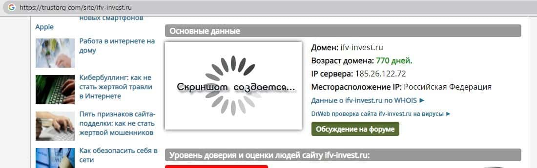 Не дало результата и поиск по тренду "IFV Invest ru". Согласно данной информации можно найти только одно объяснение данной ситуации, что это мошенники.
