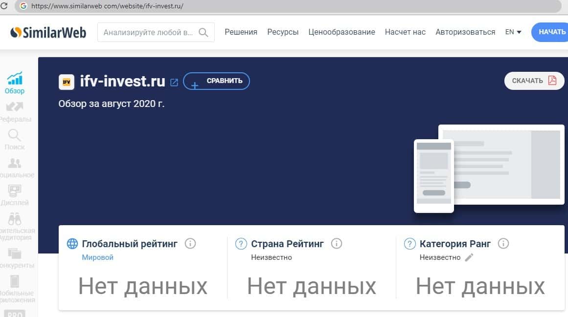 - История трафика бренда ИФХ-Инвест на портале similarweb com