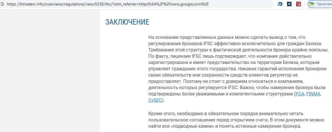 - По мнению веб-портала fxtraders info работа с регулятором IFSC не предоставляет никаких гарантий