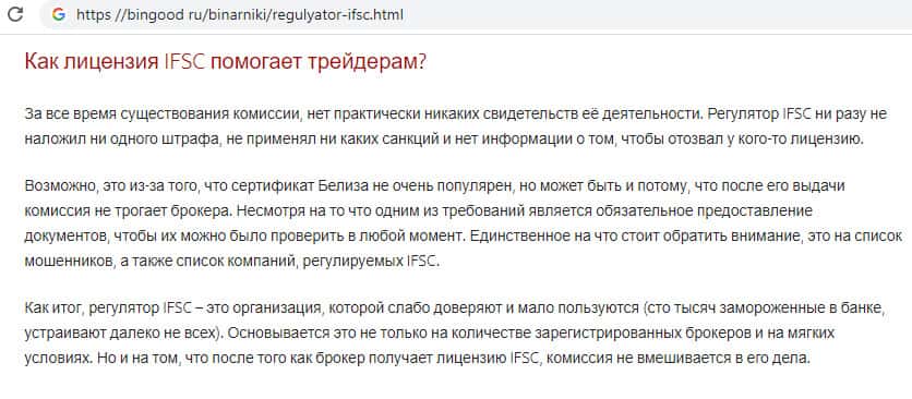 По мнению ресурса bingood ru IFSC - весьма сомнительный и нечестный финансовый регулятор