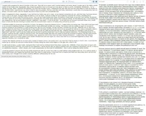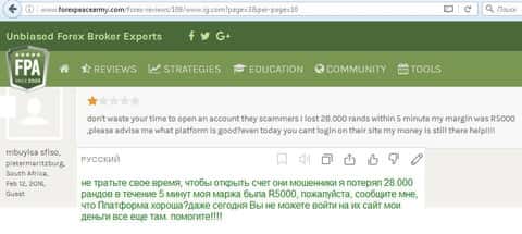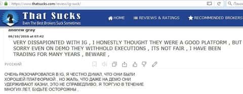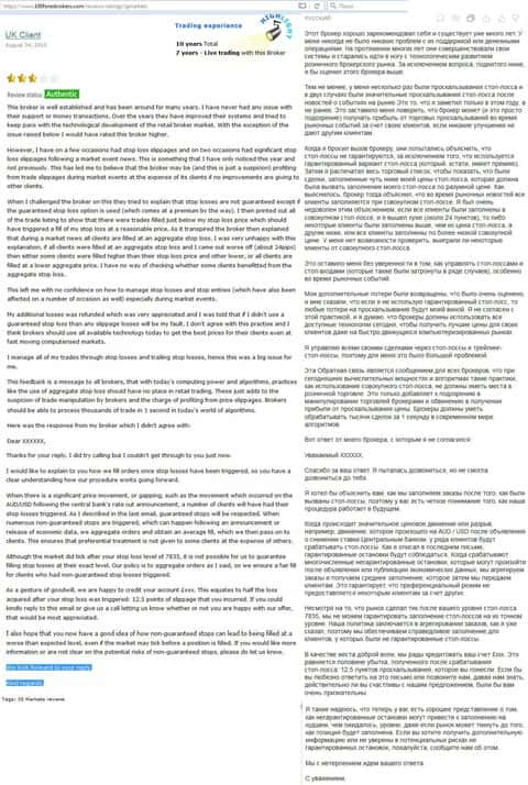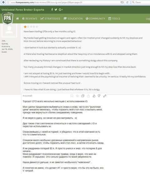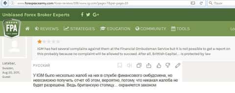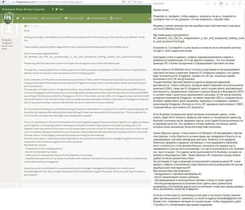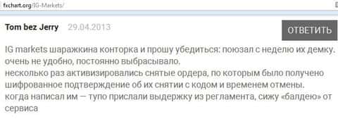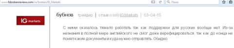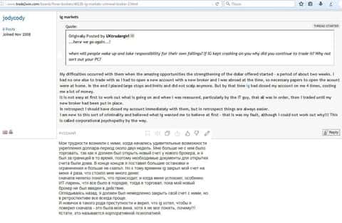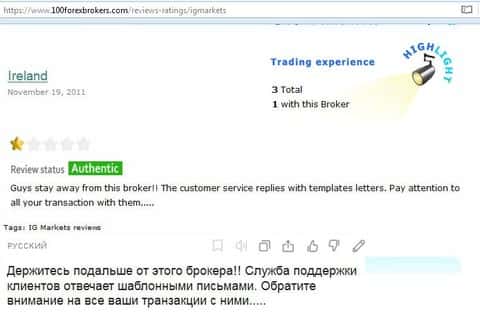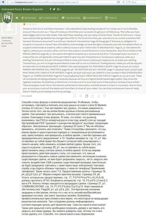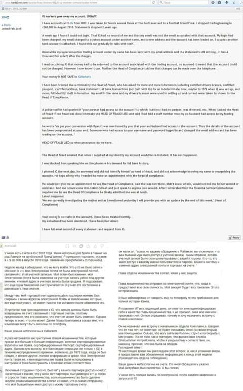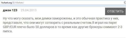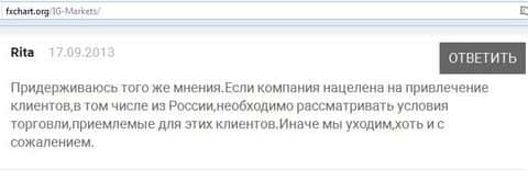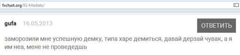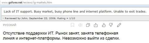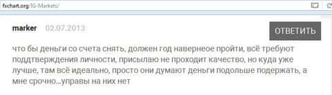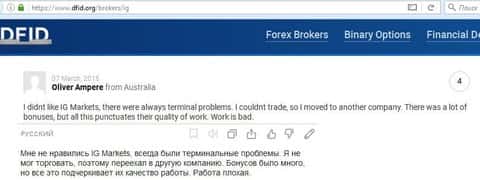 Вот еще один отзыв, который показывает отношение поддержки к проблемам клиента, максимально могут процитировать регламент. Проблемы клиентов брокера IG Markets Ltd не касаются.