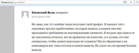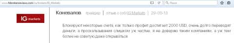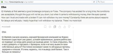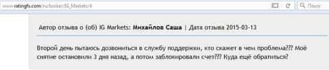 - Дилинговый центр IG Markets Ltd задерживает вывод денег своим клиентам