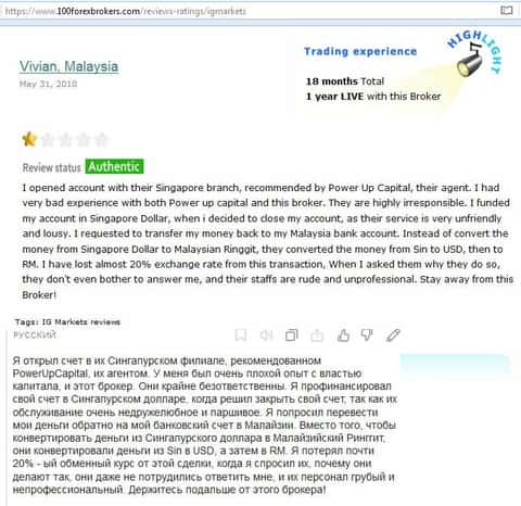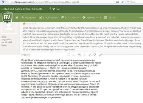 Интересная история написана следующим клиентом forex-кухни IG Markets. В его отзыве имеется достоверная информация, как мошенники вводят в заблуждение жителей Сингапура.