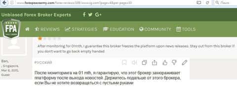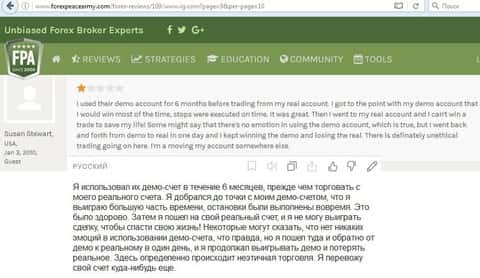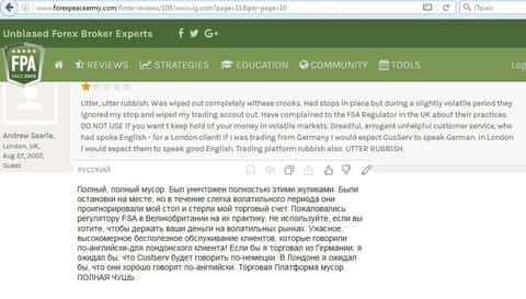 Пример отзыва с зарубежного сайта, в котором пользователь пишет, что данная кухня не может быть рекомендована в качестве брокера.