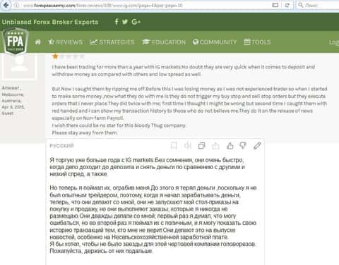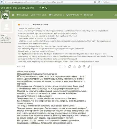 - Брокер IG Markets обманывает клиентов при конвертации валюты во время выводы средств со счета