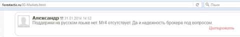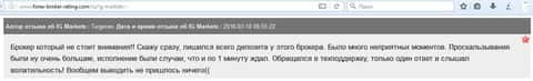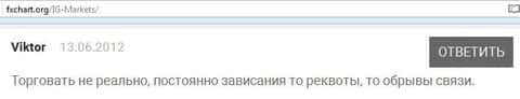 На слабую клиентскую поддержку в ИГ Маркетс жалуется и следующий любитель форекса. Особенно это касается моментов, когда требуется быстро закрыть сделку, то дозвониться до них просто не реально пишет трейдер. Время уходит, убытки клиентов растут, а сделать ни чего не могут, так как поддержка не отвечает. Остается только наблюдать за тем, как тает капитал...