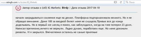 - Клиент IG Markets Ltd ощутил проблемы после увеличения счета до 3 500 долларов