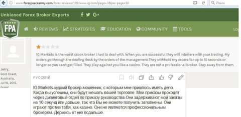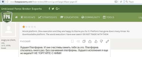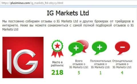 - Очень низкий рейтинг имеет IG Markets на ресурсе forex-broker-raiting com
