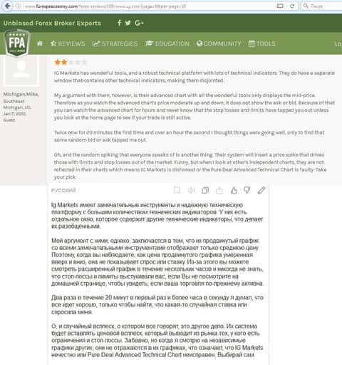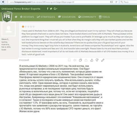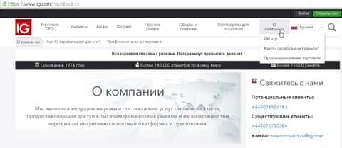 - Кухня IG Markets Ltd не ориентирована на русскоязычного трейдера