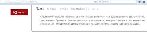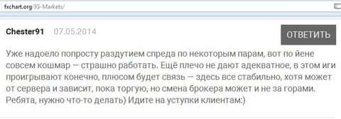 - Величина спреда и маленькое кредитное плечо у брокера ИГ Маркетс приводит к разочарованию трейдеров