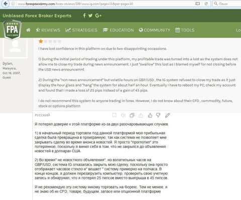 - Объективные минусы торговли с компанией IG Markets