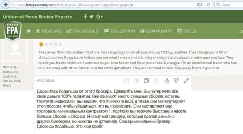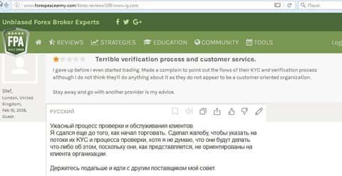 - Русскоговорящим трейдерам сложно работать с брокером ИГ Маркетс