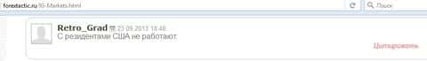 Пользователь сети Интернет пишет, что жители США не могут торговать в дилинговом центре IG Markets. Не спроста это, так как у них более жесткое законодательство в отношении кухонных брокеров.