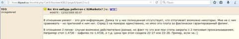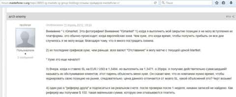 Далее еще клиент дилингового центра ИГ Маркетс пишет, что очень часто войти на платформу невозможно, она висит, кроме того проскальзывания цен у них просто ужасные, а объяснения поддержки вызывают смех своей наивностью. Попробовал получить оплату за приведенного друга в данной конторе, так и тут трейдера ждало разочарования, вместо денег они удалили все записи об этом. Стоит ли им доверять? Ответ напрашивается сам по себе - лучше не стоит.
