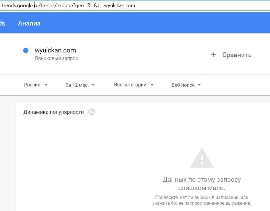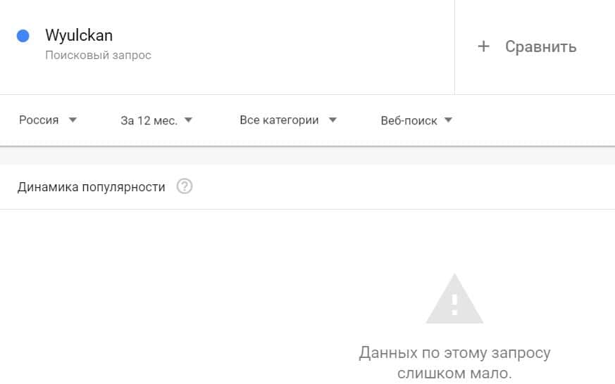 Запросы от пользователей по доменному имени "wyulckan com" в сервисе Гугл Тренд почти не поступали.