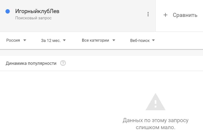 Название бренда "ИгорныйклубЛев" на русском языке без пробела пользователи не искали в системе Гугл.