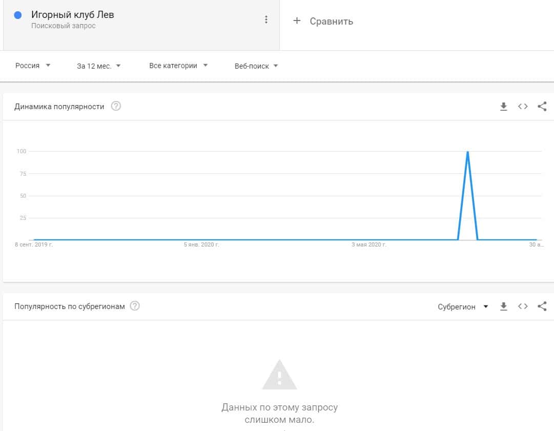 Название бренда "Игорный клуб Лев" на русском языке искали в системе Гугл мало пользователей.