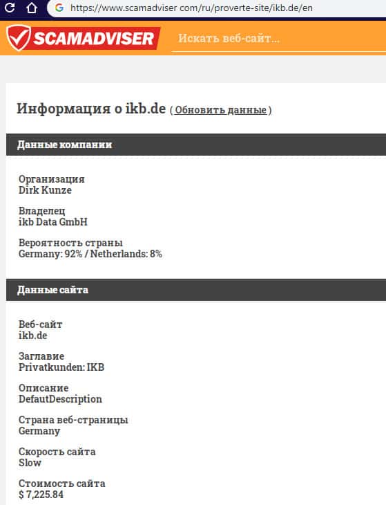 scamadviser com - сайт с технической информацией о жуликах IKB