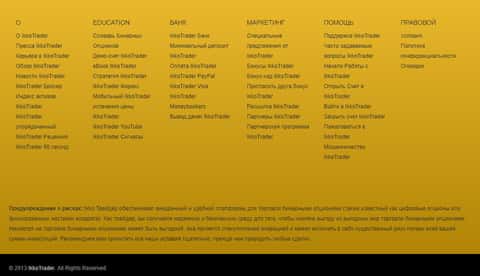 Завершается сайт у аферистов IKKO Trader меню со ссылками на различные разделы данного сайта, а так же предупреждением о рисках, в которых шулера ИККО Трейдер уже не особо рекомендуют торговлю форекс. На изображении, расположенном ниже, вы можете увидеть окончание сайта мошенников IKKO Trader.