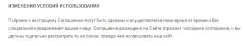 После ранее упомянутого условия мошенники IKKO Trader заявляют о том, что они могут и вносить изменения в данное клиентское соглашение, тем самым делая его гибким исключительно для себя, что практически полностью лишает прав клиента. На изображении ниже вы можете увидеть данное условие шулеров ИККО Трейдер.