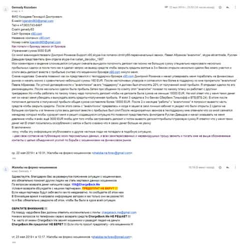 Подробная жалоба на аферистов Икс90 - клиент утратил 5550 евро