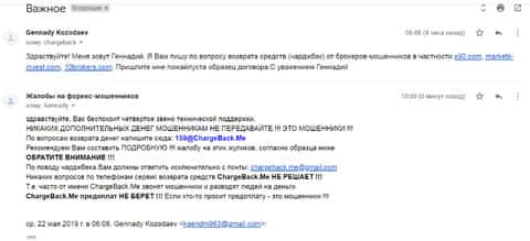 Автор последующей публикации на мошенников Форекс Икс90, пострадал от рук не только этих аферистов, но и еще от таких кухонных организаций как Маркетс Инвест и 10 Брокер. Теперь для того, чтобы вернуть утраченное человеку нужно обратиться в сервис ChargeBack.Me за помощью.