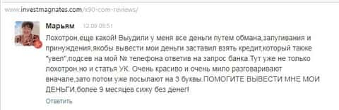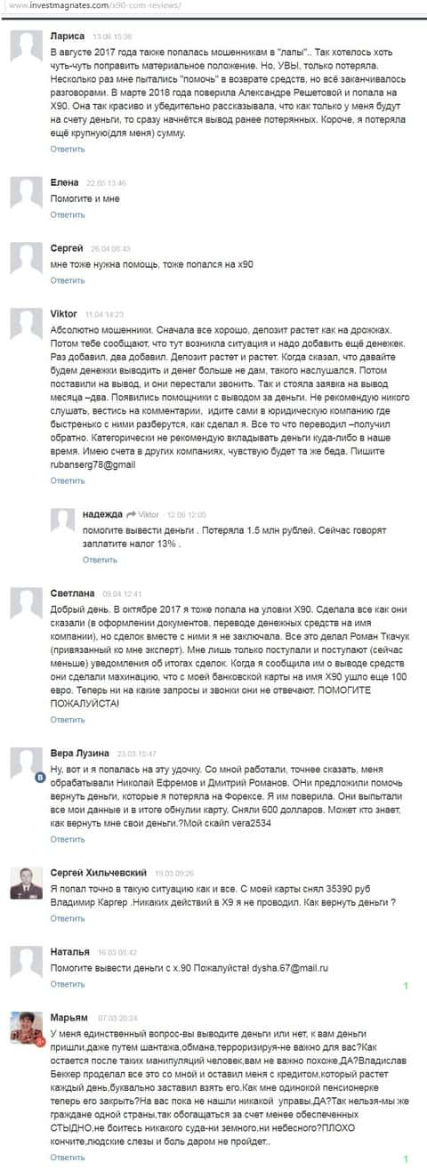 Предлагаю вашему вниманию комментарии о жульнической деятельности ДЦ Икс 90, которые взяты были с веб-источника investmagnates com.
