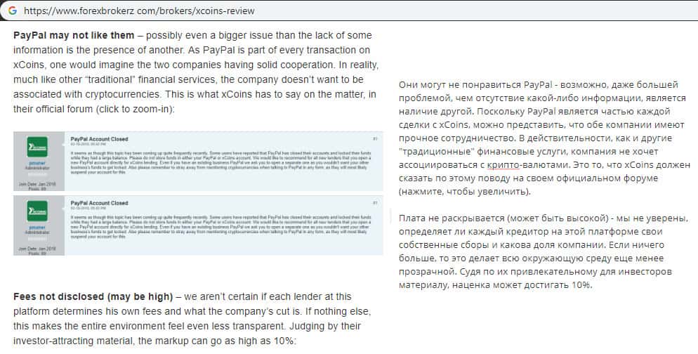 Подробный разбор замечаний к работе аферистов xCoins на сайте forexbrokerz com