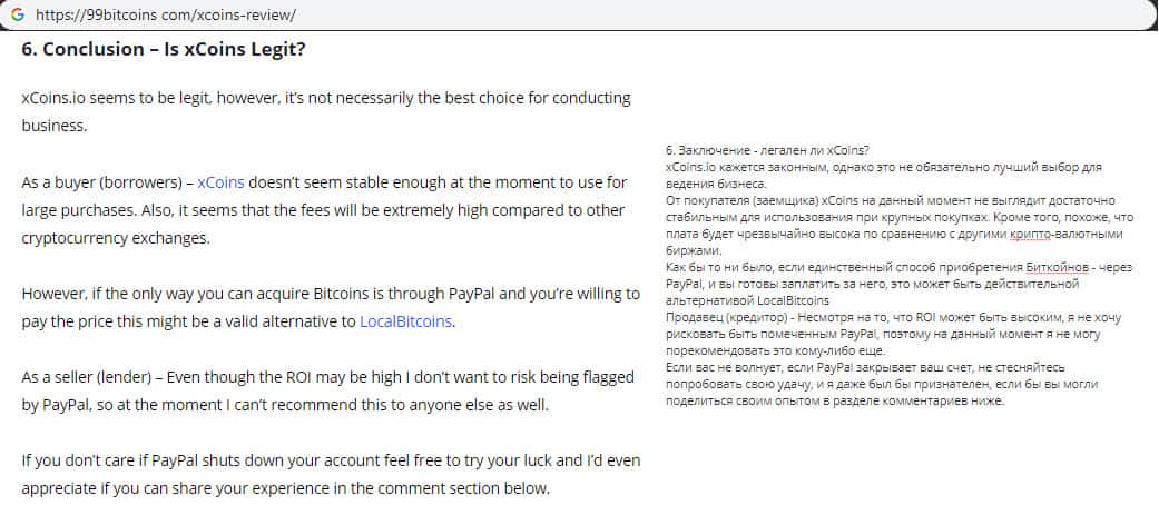 Пользователь очень точно подметил, что по факту аферисты xCoins являются посредниками между теми, кто продаёт биткоины и, кто их, соответственно, покупает. Такая роль владельцев платформы, особенно учитывая их пользовательское соглашение, абсолютно не гарантирует безопасность подобных сделок и то, что вы не потеряете свои сбережения.
