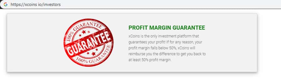 Чтоб уж наверняка заманить к себе потенциальную наивную клиентуру, шулера Икс Коинс якобы дают гарантию на прибыль, то есть убытков не будет либо вообще никаких, либо они будут минимальны. Довольно-таки эффективная замануха, не подкреплённая документами.