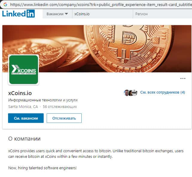 - аккаунт аферистов xCoins в бизнес-сети LinkedIn linkedin com/company/xcoins?trk=public_profile_experience-item_result-card_subtitle-click