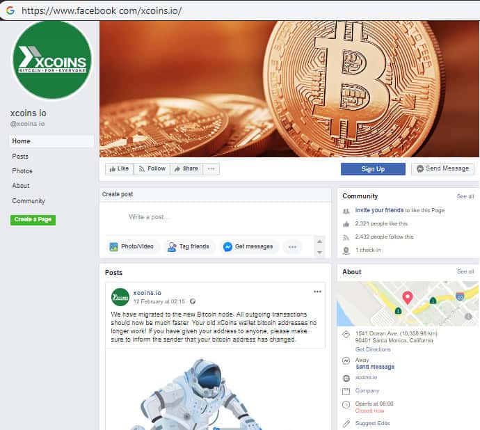 Аферисты xCoins не особо любят социальные сети: зачем делать качественно, если это для галочки?