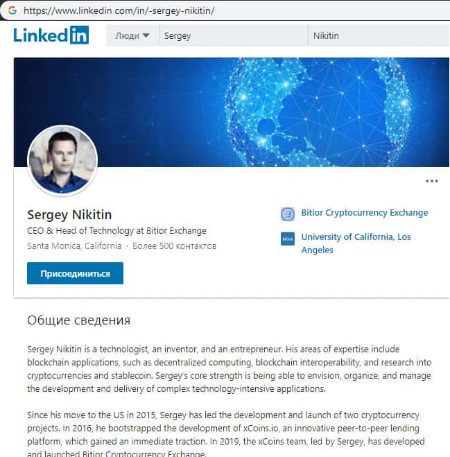 linkedin com - бизнес-сеть с аккаунтами руководства и конторы Икс Коинс