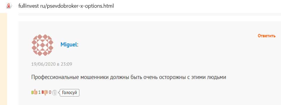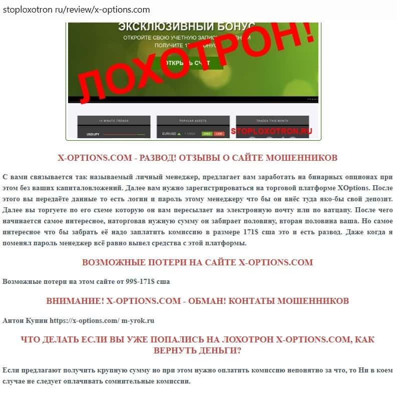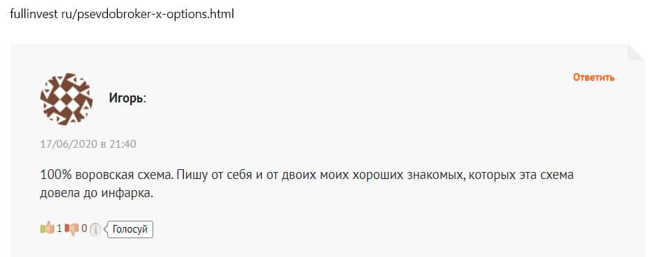 Обзоры о псевдоброкере Икс Опционс, найденные в интернете