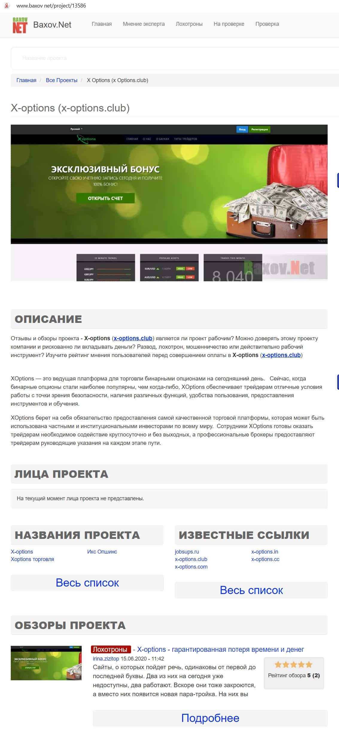Сайт Баксовнет, который пишет о мошенниках в интернете, также опубликовал статью, где называет компанию Х-Оptions явным лохотроном. Также перечислены домены этой конторы.