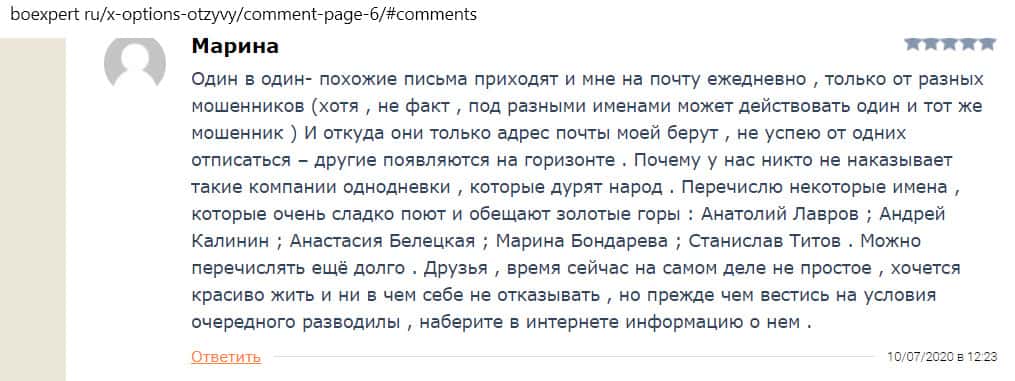 Люди не доверяют компании Икс Опционс и считают лохотроном