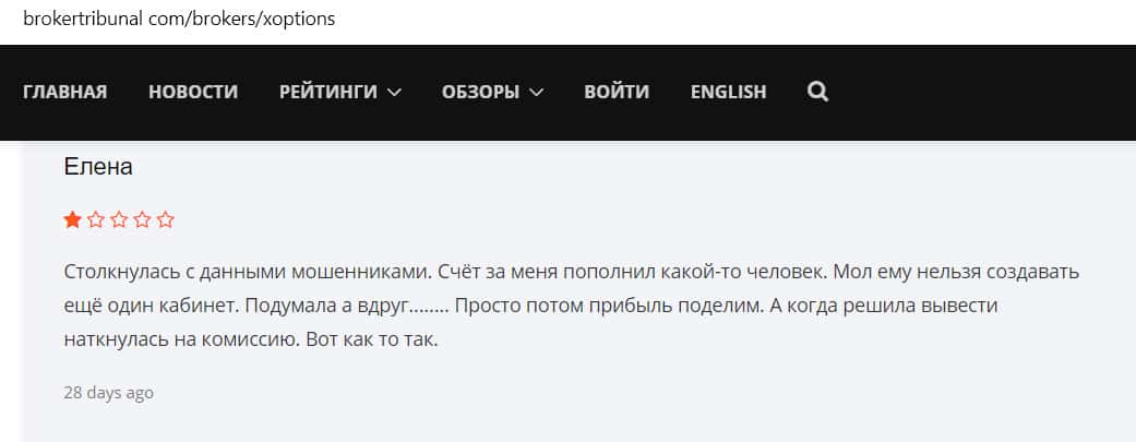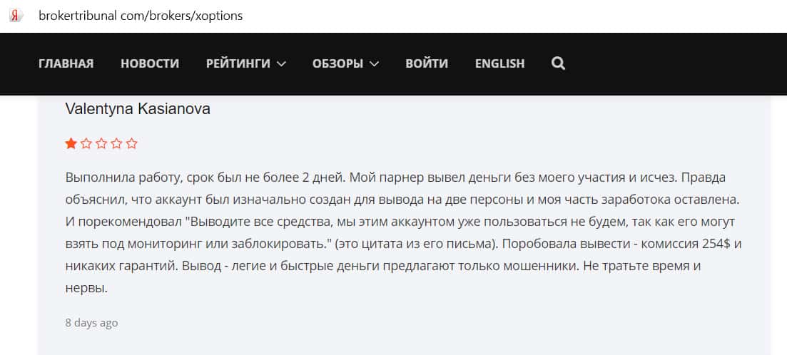 - Отзывы клиентов, которые пострадали от лжеброкера Х-Оptions