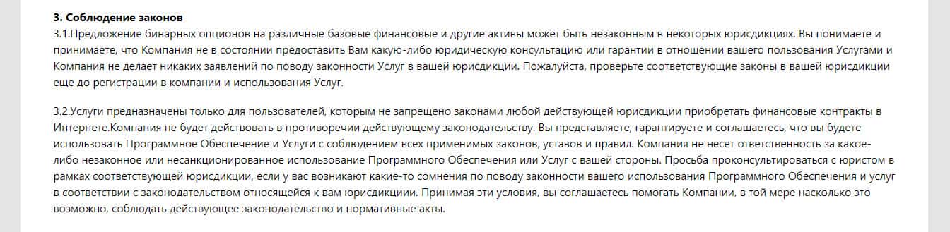 В пункте 3 компания Х-Оptions говорит, что будет действовать в соответствии с действующим законодательством. Вот только эту шарашкину контору никто не регулирует.