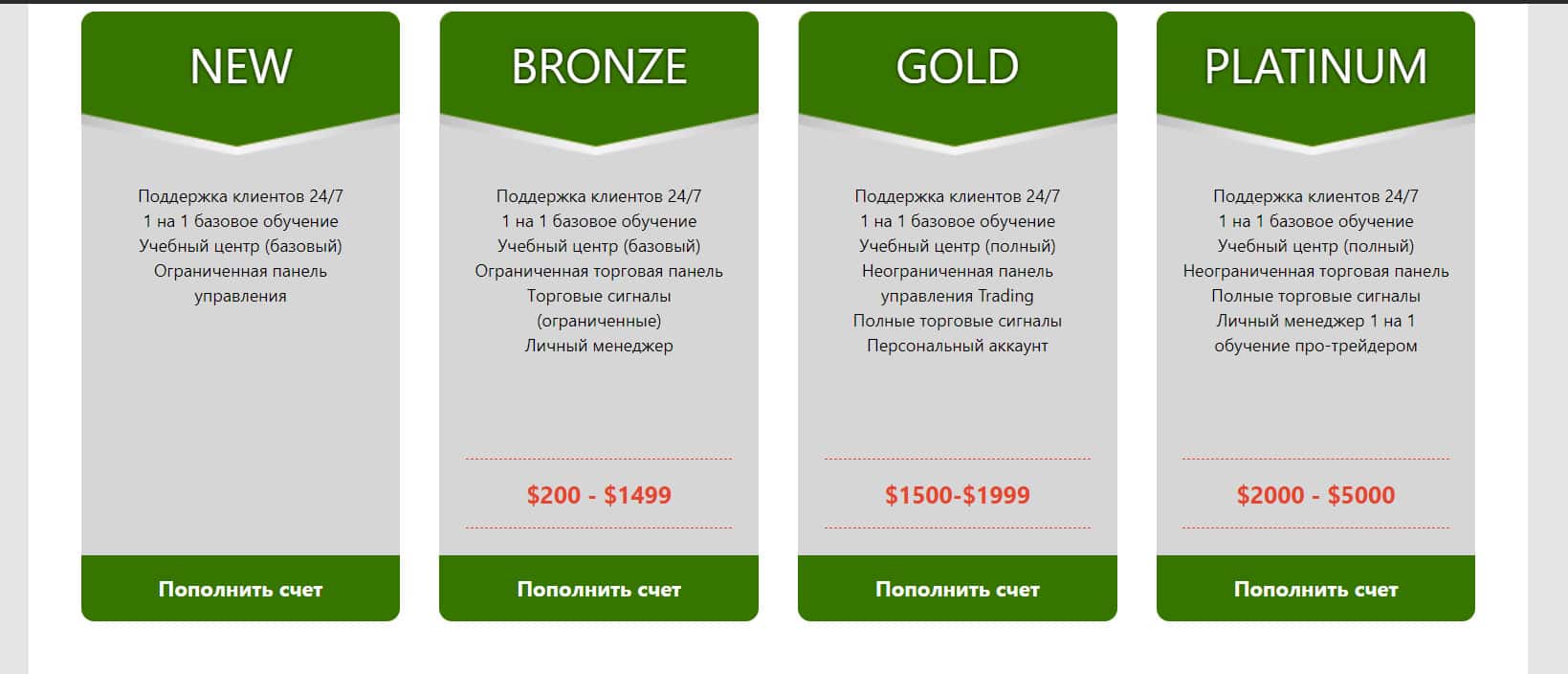 Если посмотреть на типы счетов брокера Икс Опционс, становится ясно, что это фейк, так как они почти ничем не отличаются. А размер минимального депо указывает на то, что имеем дело с кухней.