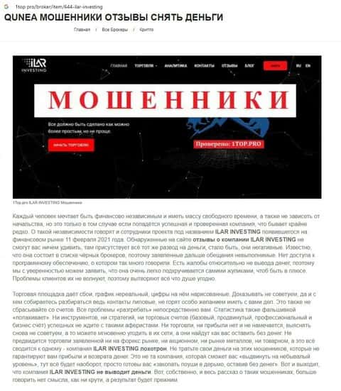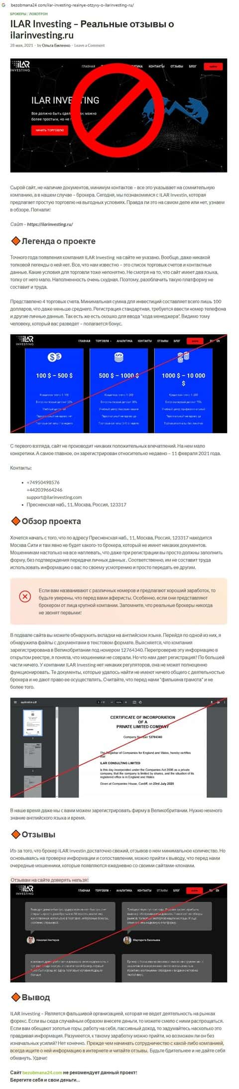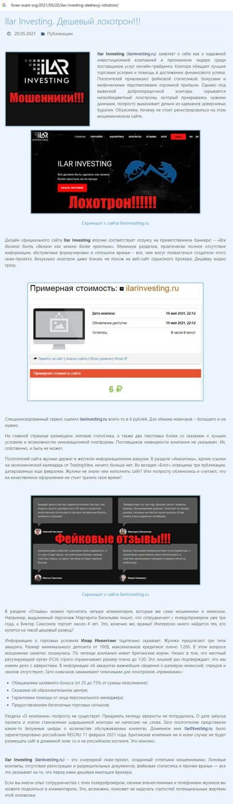 Отзывы о жуликах Илар Инвестинг, ныне присутствующие во всемирной паутине